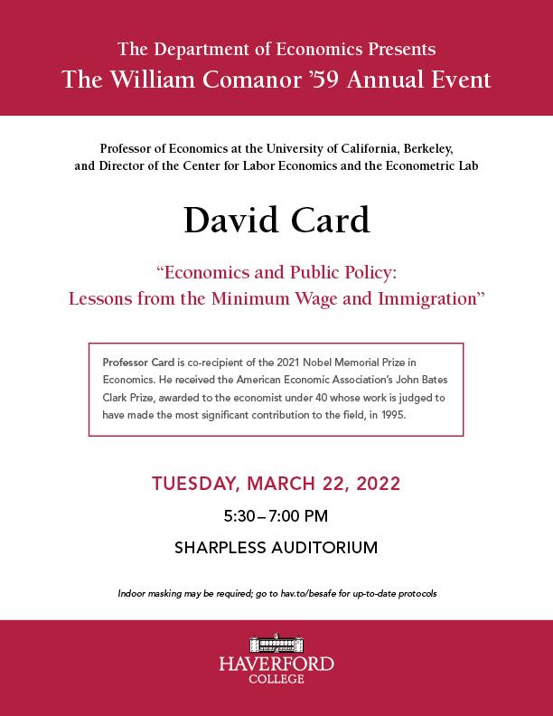 Event Details - David Card "Economics and Public Policy: Lessons from the Minimum Wage and Immigration"