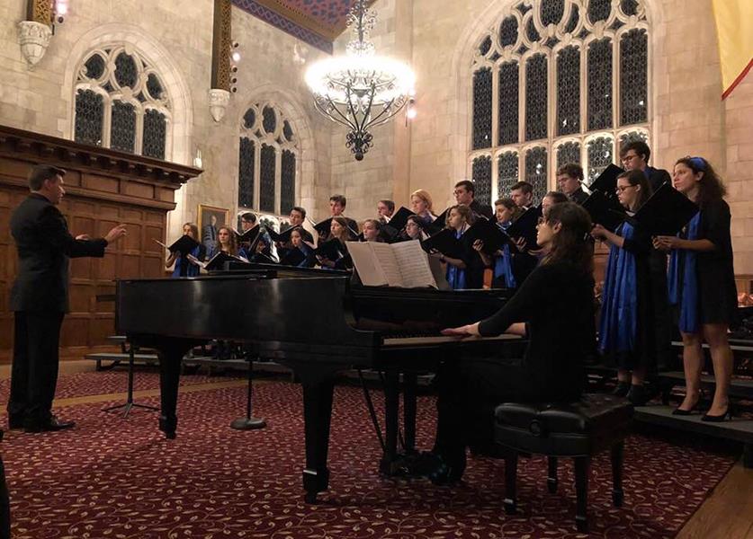 The Chamber Singers, conducted by Nate Zullinger, will preview their Quebec tour concert in the Great Hall at Bryn Mawr College on Friday, May 13. The concert begins at 8:30 p.m. and will last approximately an hour and 15 minutes. It will also be available via livestream at this link: hav.to/9ud.